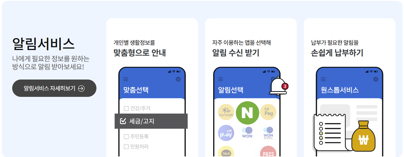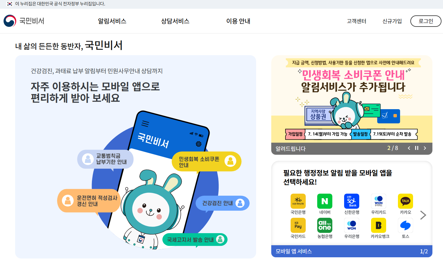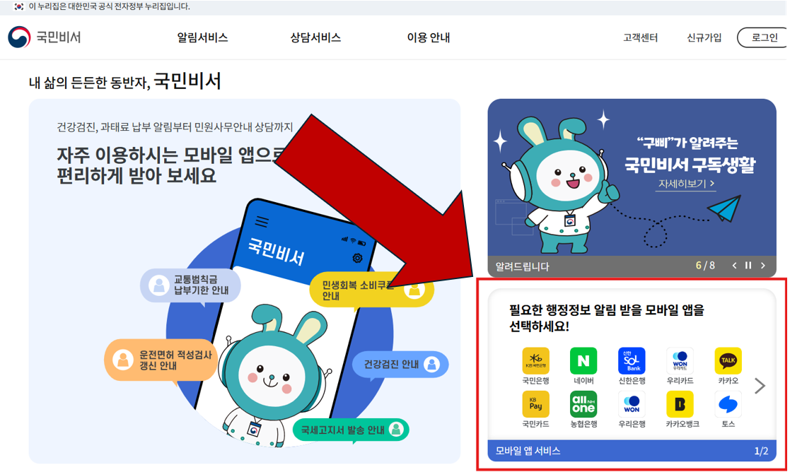 - 국민비서 알림 신청(카카오톡·토스·네이버앱 등)